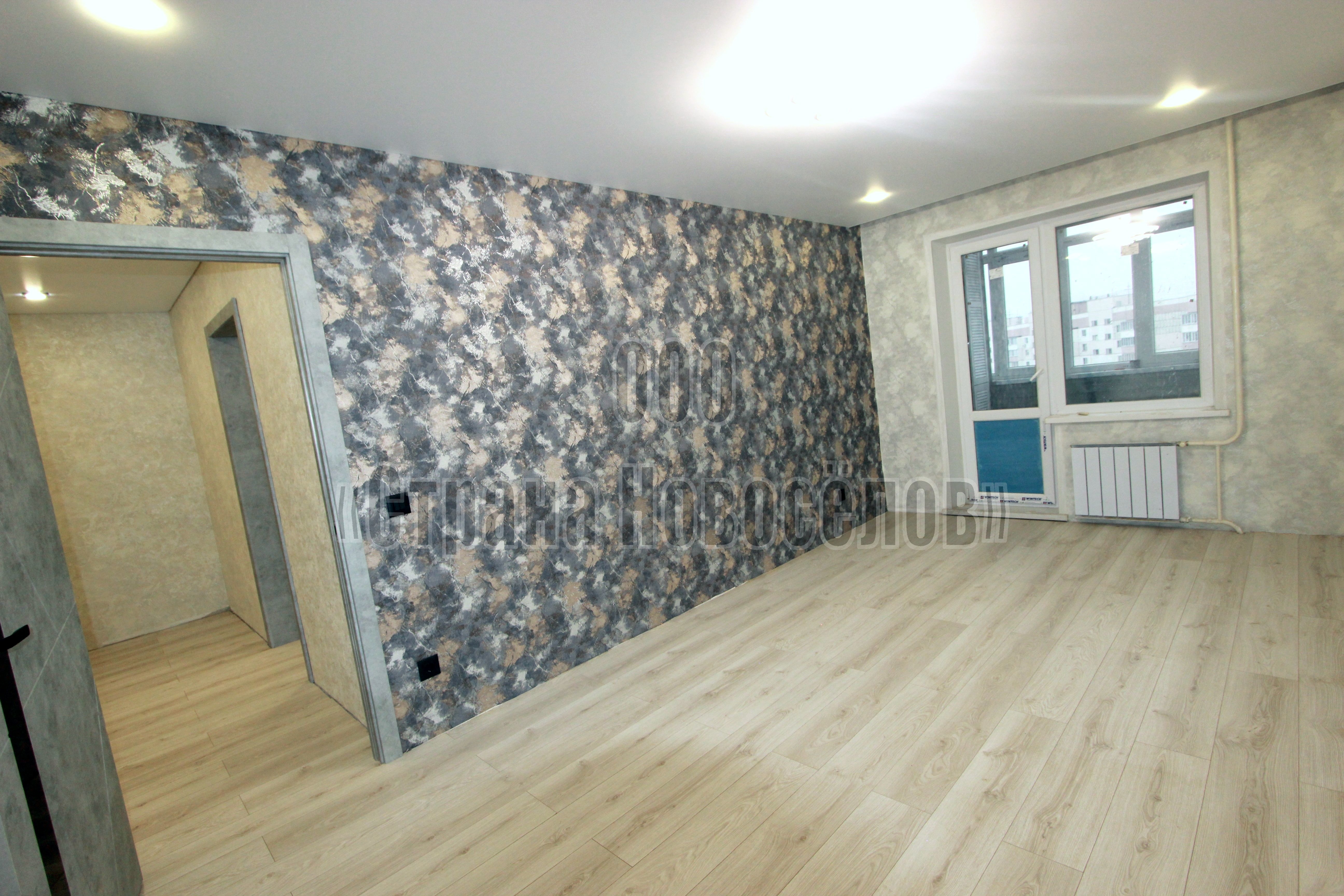 В квартире сделан новый ремонт по Евростандатру: выравнены стены и полы, уложен ламинат, установлены пластиковые окна, натяжные потолки с точечными светильниками, качественные межкомнатные и надежная входная двери. Санузел - керамогранит, лоджия застеклена (окна ПВХ) и отделана.