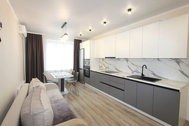 В квартире сделан ремонт из качественных строительных материалов в приятных тонах, во входной зоне - теплые полы. Квартира укомплектована всей необходимой мебелью и техникой, которая остается в подарок новому собственнику!